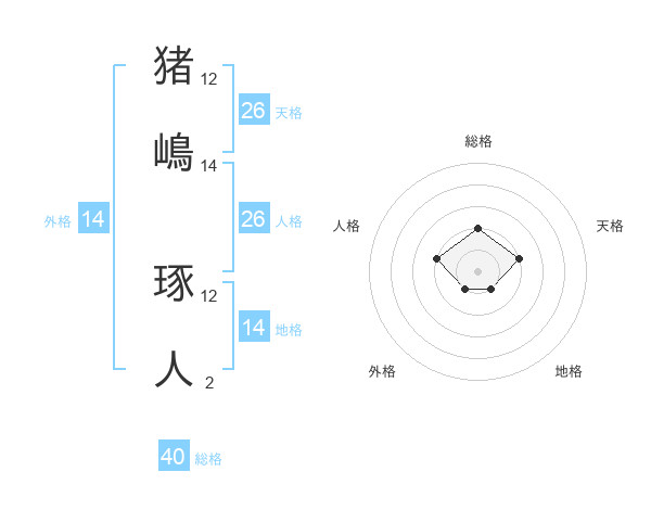 猪嶋 琢人さんの天格は26画の2点!