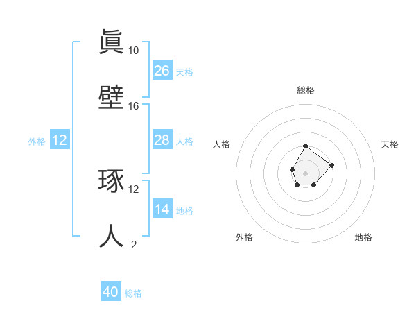 眞壁 琢人さんの総格は40画の2点!