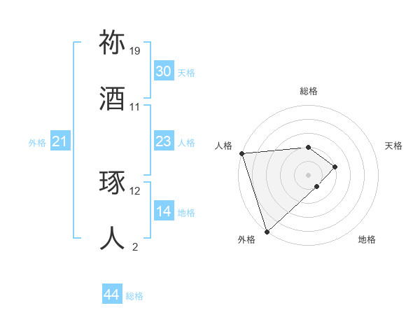 祢酒 琢人さんの天格は30画の2点!