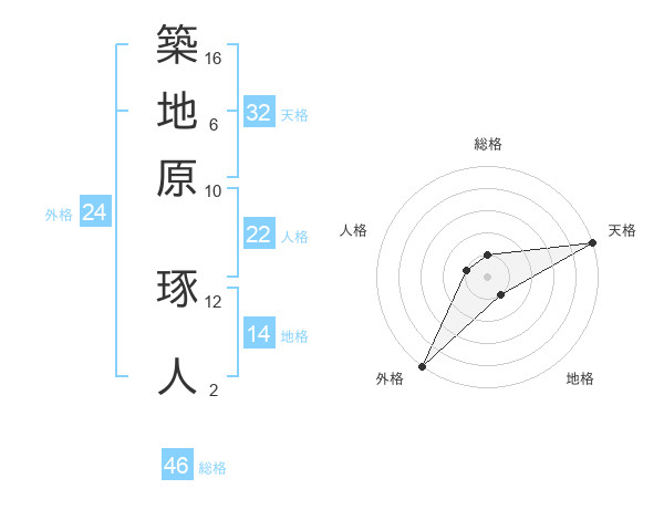 築地原 琢人さんを姓名の画数から五運を鑑定