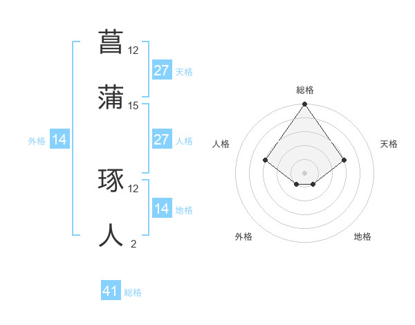 菖蒲 琢人さんの天格は27画の3点!