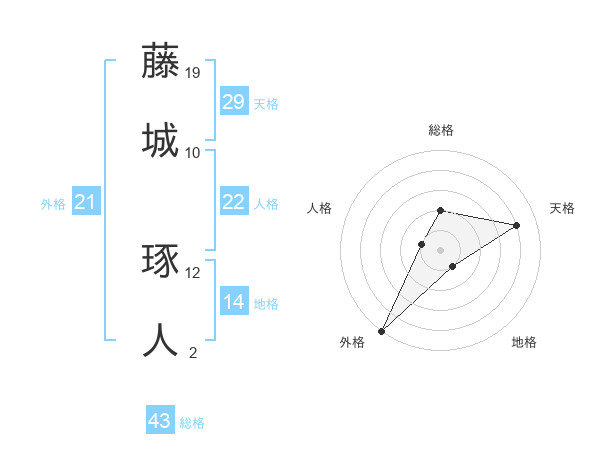 藤城 琢人さんの外格は21画の5点!