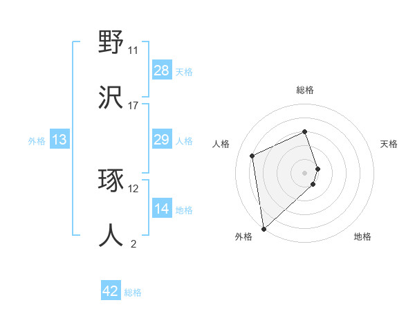 野沢 琢人さんの外格は13画の5点!