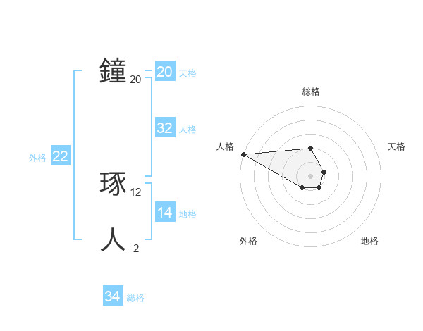 鐘 琢人さんの外格は22画の1点!