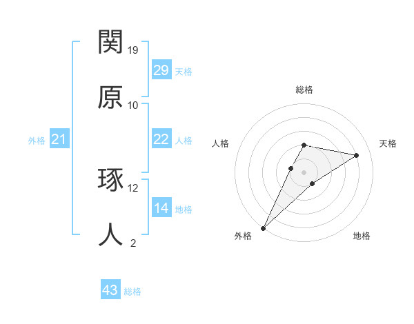 関原 琢人さんの天格は29画の4点!