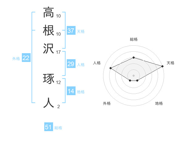 高根沢 琢人さんの総格は51画の3点!