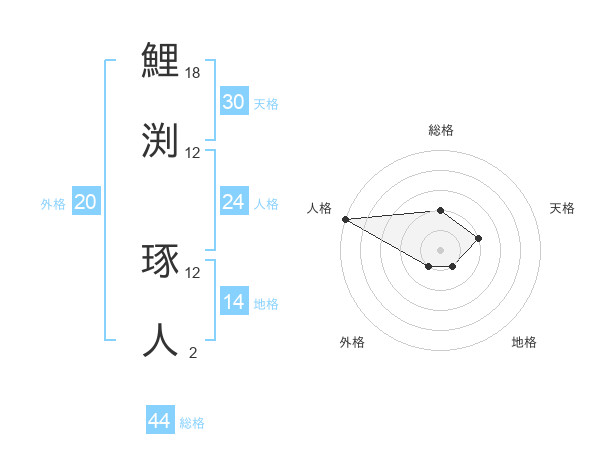 鯉渕 琢人さんを姓名の画数から五運を鑑定