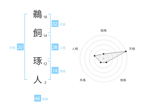鵜飼 琢人さんの天格は32画の5点!