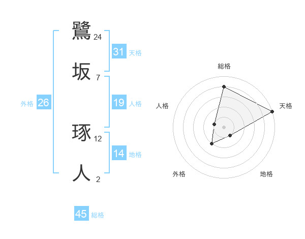 鷺坂 琢人さんの総格は45画の4点!