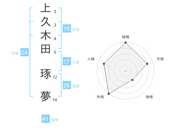 上久木田 琢夢さんの天格は15画の4点