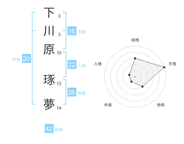下川原 琢夢さんを姓名の画数から五運を鑑定