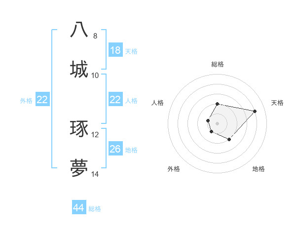 八城 琢夢さんを姓名の画数から五運を鑑定