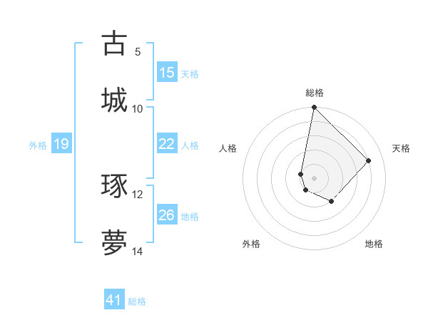 古城 琢夢さんの総格は41画の5点!