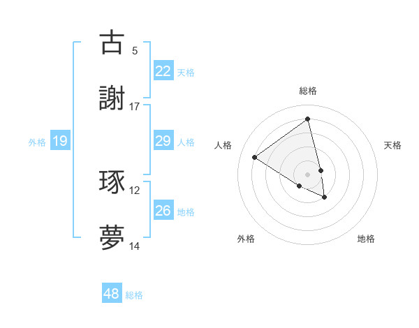 古謝 琢夢さんを姓名の画数から五運を鑑定