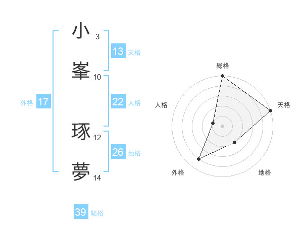 小峯 琢夢さんの天格は13画の5点!