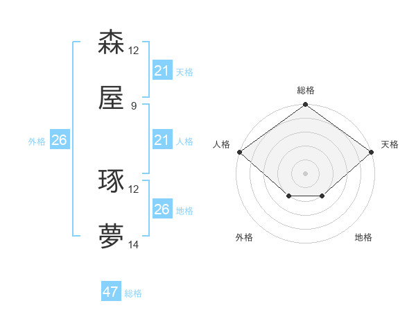 森屋 琢夢さんの総格は47画の5点!