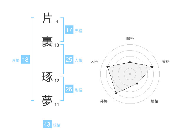 片裏 琢夢さんの天格は17画の4点!