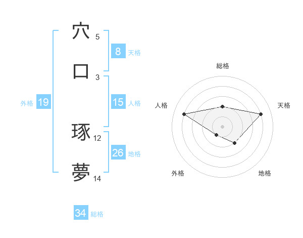 穴口 琢夢さんの総格は34画の2点!