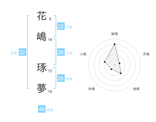 花嶋 琢夢さんの天格は22画の1点!