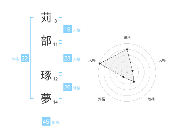 苅部 琢夢さんを姓名の画数から五運を鑑定