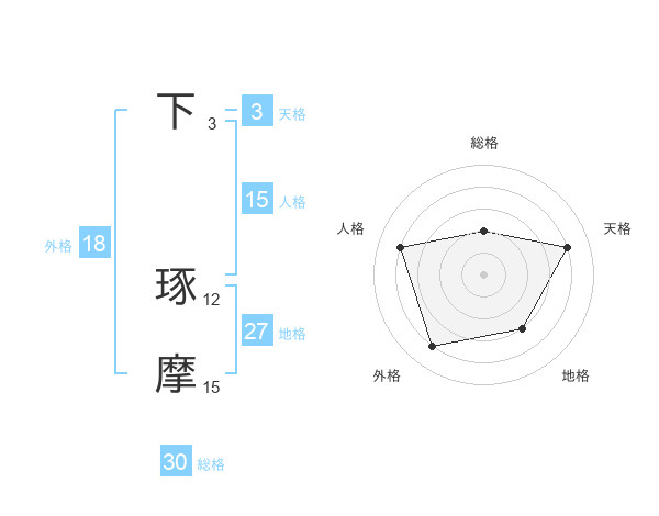 下 琢摩さんの地格は27画の3点!
