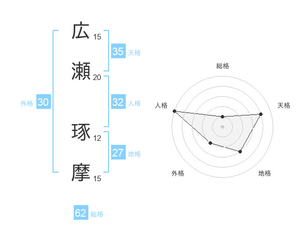 広瀬 琢摩さんを姓名の画数から五運を鑑定