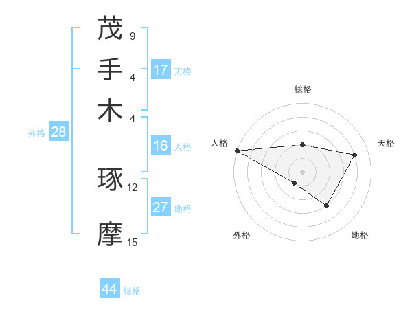 茂手木 琢摩さんを姓名の画数から五運を鑑定