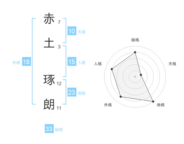 赤土 琢朗さんの総格は33画の4点!
