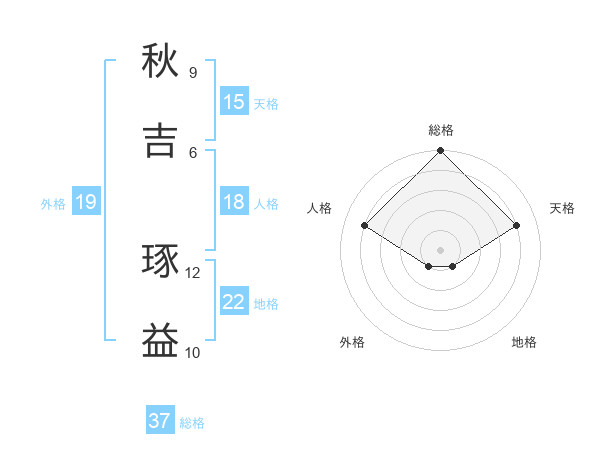 秋吉 琢益さんの総格は37画の5点!