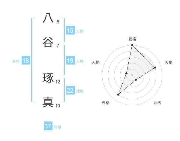 八谷 琢真さんの総格は37画の5点!