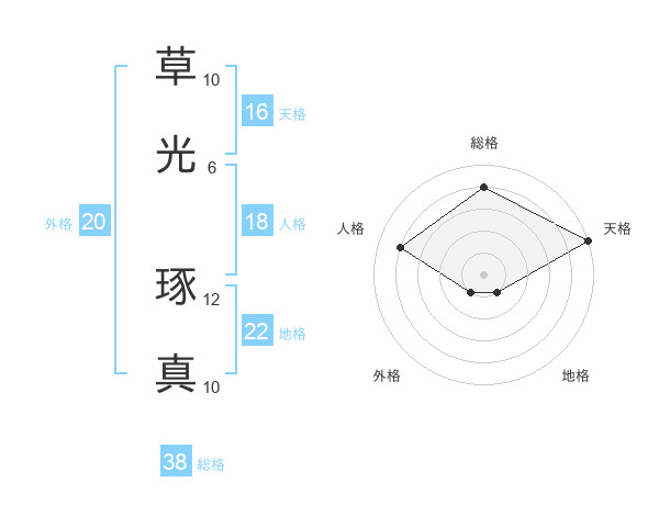 草光 琢真さんの総格は38画の4点!
