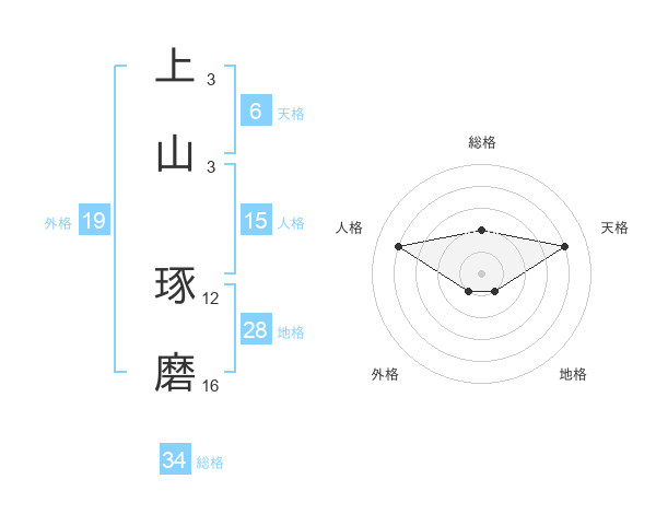 上山 琢磨さんを姓名の画数から五運を鑑定