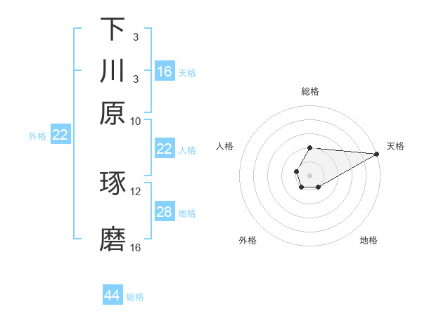 下川原 琢磨さんの外格は22画の1点!