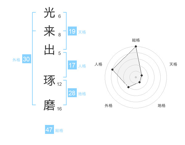 光来出 琢磨さんを姓名の画数から五運を鑑定