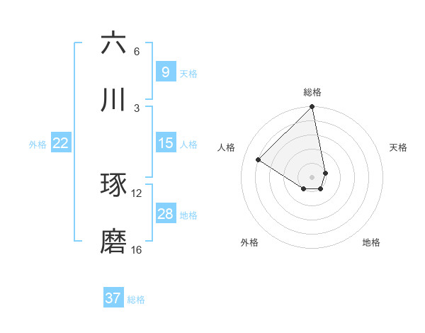 六川 琢磨さんを姓名の画数から五運を鑑定