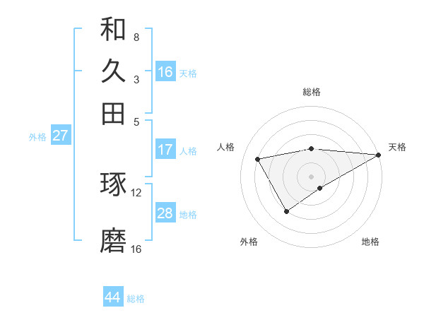 和久田 琢磨さんを姓名の画数から五運を鑑定