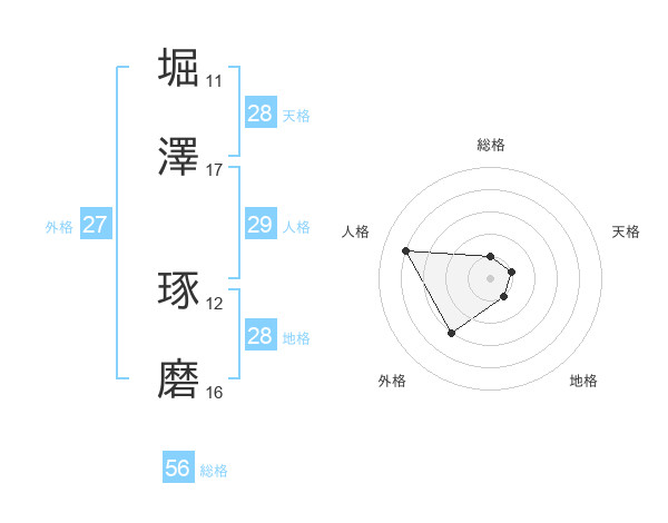 堀澤 琢磨さんの天格は28画の1点!