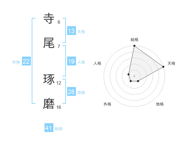 寺尾 琢磨さんの天格は13画の5点!