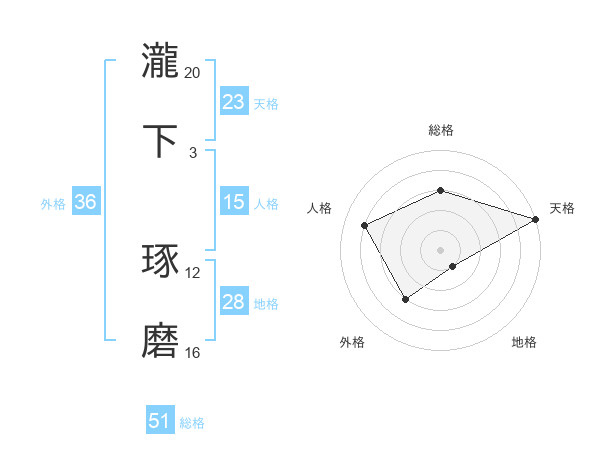 瀧下 琢磨さんを姓名の画数から五運を鑑定