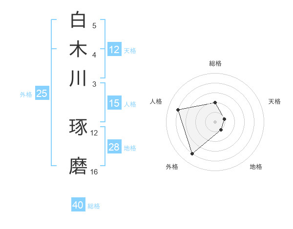 白木川 琢磨さんの外格は25画の4点!