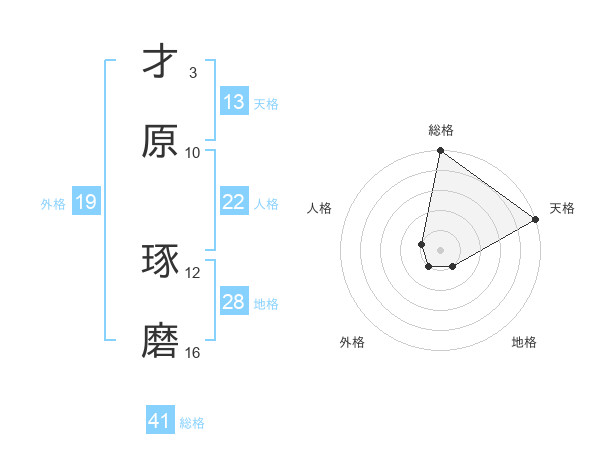 才原 琢磨さんの天格は13画の5点!