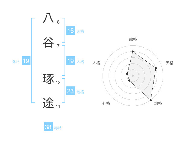 八谷 琢途さんの総格は38画の4点!