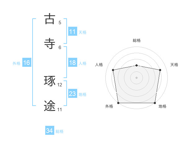 古寺 琢途さんを姓名の画数から五運を鑑定