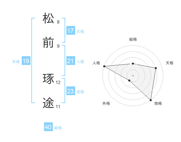 松前 琢途さんの天格は17画の4点!