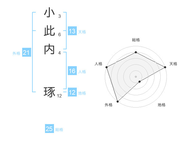 小此内 琢さんの総格は25画の4点!