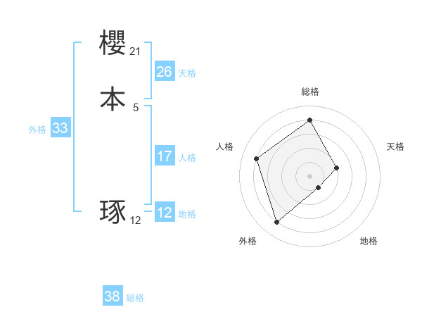 櫻本 琢さんの総格は38画の4点!