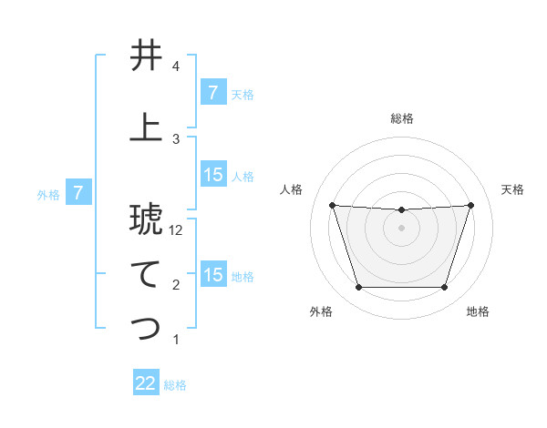 井上 琥てつさんを姓名の画数から五運を鑑定
