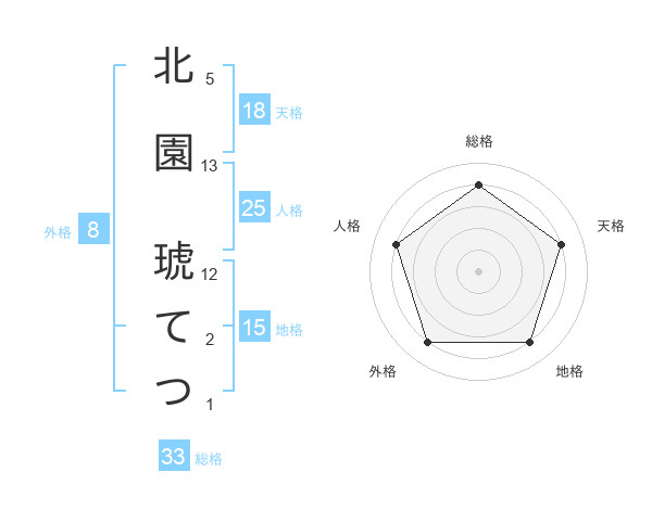 北園 琥てつさんを姓名の画数から五運を鑑定