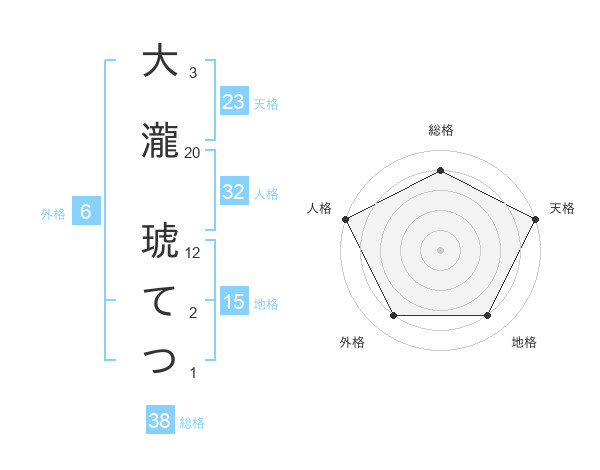 大瀧 琥てつさんの総格は38画の4点!