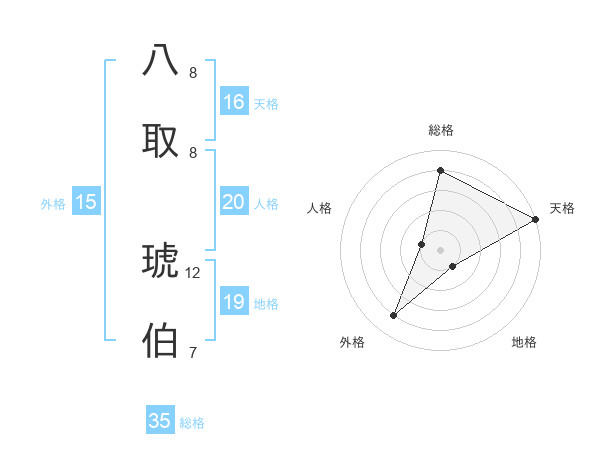 八取 琥伯さんの天格は16画の5点!